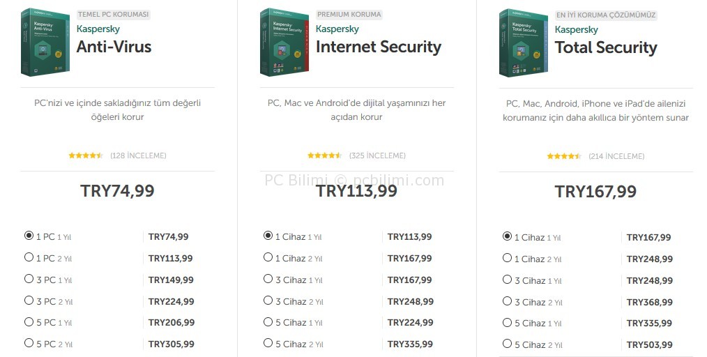 Kaspersky her zaman ki gibi iyi antivirüs yazılımları arasındaki yerini korumaya devam ediyor. Listedeki yeri değişse bile birçok kullanıcının ilk aklına gelenler arasında. Dijital yaşamınızda çevrimiçi gezinirken, sosyalleşirken, bankacılık işlemleri ve alışveriş yaparken bilgisayar, tablet ve telefon gibi cihazlara güvenirsiniz. İşte bu nedenle ödüllü güvenlik çözümlerimiz sizin için en önemli şeyleri, yani gizliliğinizi, çocuklarınızı, paranızı ve daha fazlasını korumanıza yardımcı olur. Kaspersky Anti-Virus, Internet Security, Total Security 2019 seçeneklerinden birini tercih edebilirsiniz.