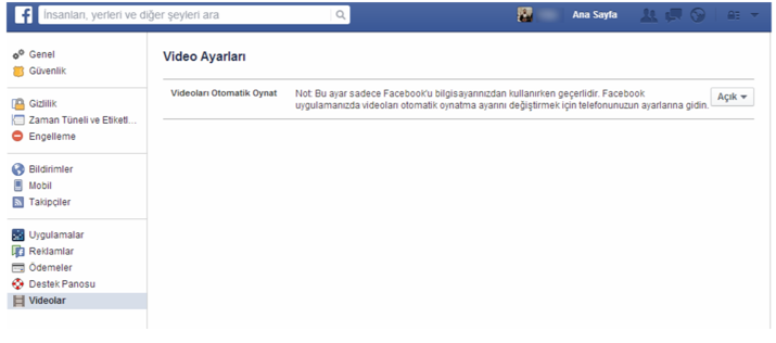 Bu özellik genelde akıllı telefonlarda kapatılmak istenebilir yani en çok kullandığımız cihazlarda mobil cihazlar.. Mobil cihazlarda ise Facebook uygulamasından uygulama ayarlarına girerek “video otomatik oynatımı” kısmını açık, kapalı ve sadece wi-fi olarak değiştirebilirsiniz.