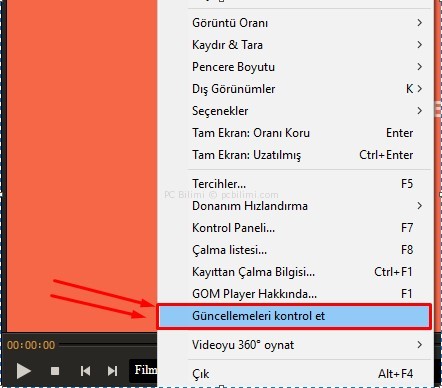 Windows Üzerinde Gom Player Güncelleme (2. Pratik Yöntem):
