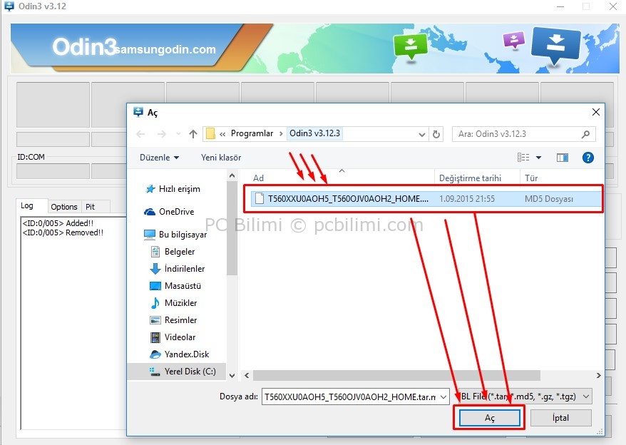 3. Odin sürümlerinden dilediğinizi bilgisayarınıza indiriniz. Daha sonra klasör içinden odin klasörünü çıkararak masaüstünüze çıkarın. Sammobile benzeri sitelerden indirdiğiniz rom dosyasını zipten çıkararak md5 dosyasını odin klasörünün içine atın. Odin3 v3.11.1 (1791 downloads ) Odin3 v3.12.3 (2023 downloads )