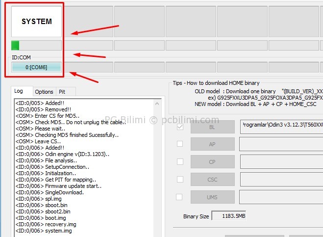 4. Odin3 programını çalıştırın ve altta ki şekilde karşınıza gelen uygulamada BL kutucuğunun yanındaki kutucuğu işaretledikten sonra BL butonuna basın.