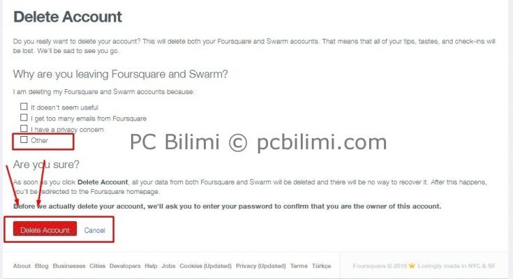 Foursquare hesabını tamamen silmek için yapmanız gereken işlem sırası aşağıdaki gibidir. Bilgisayar üzerinden önce Foursquare hesabınıza giriş yapıp daha sonrada https://tr.foursquare.com/delete_me adresine tıklayın. Seçeneklerdeki nedenlerden birini seçin. “Are you sure?” şeklindeki kısımdaki DeleRead more